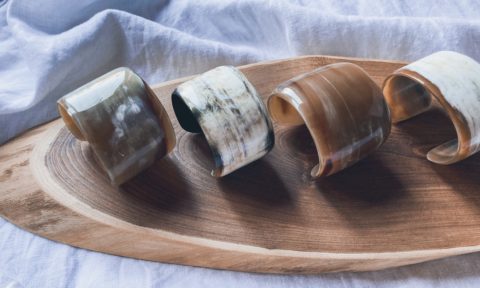 水牛の角からつくられたバングルとリング。 去年はこれを探しにベトナム・ハノイまで行ってた。 行く前に調べていたら、ベトナムでは水牛をよく食べ、農業などでの労働力としても活躍しているそうで、プラスチックを使うよりも材料が山