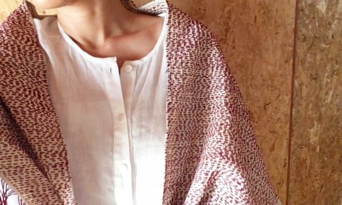 チェンマイに住んでいた頃、オーダーで作った刺し子ショール。 やっぱりかわいいので、ふたたび作りました。 三角形のリネン生地にシンプルな直線の刺し子。 さらっと羽織るだけで、いつもの服が変わります。 夏の終わり、秋のはじま