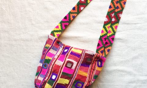 インドで見つけたバンジャーラ族のバッグ。 5枚の古い刺繍布とミラーワーク布を組みあわせてできています。 さまざまな民族がいる中でとにかく好みのバンジャーラは、この赤がとても特徴的。 バンジャーラのおばちゃんがいる市場で次